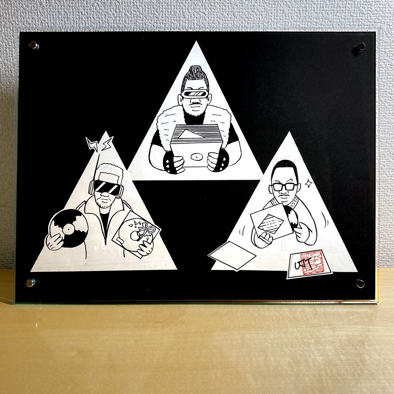 JETSETからリリースされたDJ用スリップマットの原画で構成されたアートピースです。アクリルディスプレイ付き。